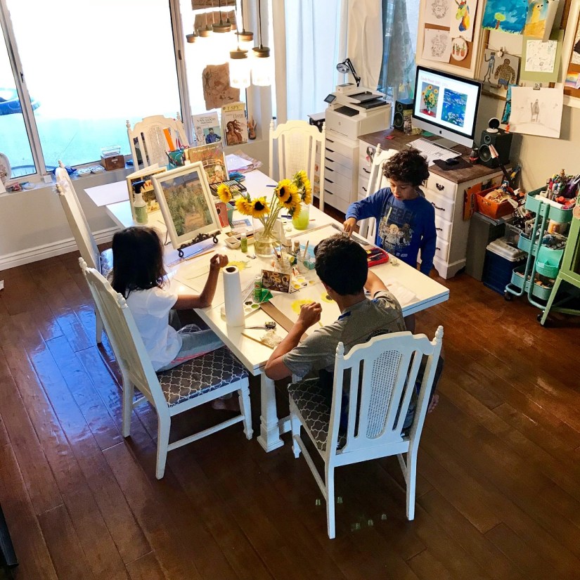 With five family members keeping our space clutter free remains a constant challenge. The creative space should provide inspiration and contain the materials needed to complete work. In my home I also want the space to allow for collaborative work to build trust among the members of the family.
