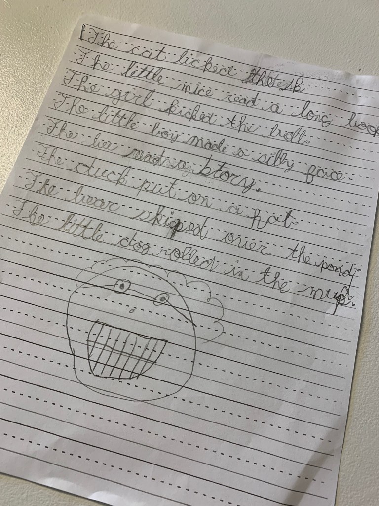 Look at the writing piece with your child. Tell them what you see that is positive about their writing piece. Start with concrete positive feedback.
