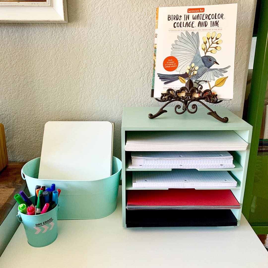 This weekend the studio got some attention. I organized our paper file cabinet and placed the most used types of paper in an organizer. Both my kids and the students I work with like having access to the paper and to the personal dry erase boards.
