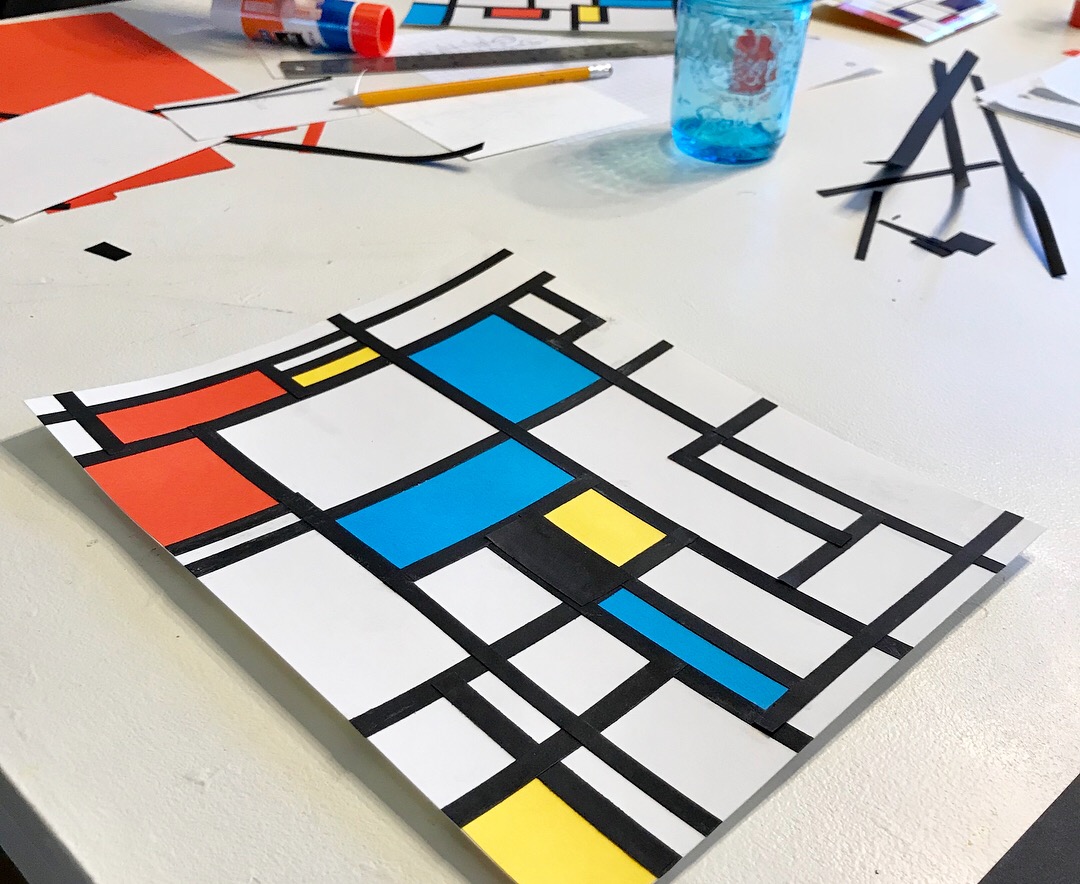 Brain research has shown that math concepts are stored as both visual and sensory motor memories. Teacher who use visual mathematics tasks and use manipulatives (hand-on learning) in their lessons encourage higher achievement. In the integrated math and art class I hosted, we looked at the art of Piet Mondrian. I used the “Make a Fake” lesson from Mindset Mathematics: Visualizing and Investigating Big Ideas by Jo Boaler, Jen Munson, and Cathy Williams as guide for the class. We spent equal time discussing and looking at art as we did math. The girls were introduced to the modern art movement and we discussed Piet Mondrian’s life and works. We looked at his use of color and shapes. Then I presented the girls with the problem: Create a Good Piet Mondrian Fake.